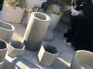 Water after soil is dry: Water thoroughly and drain. Never let sit wet or in saucer with water. Concrete will show wetness when over-watered to helps indicate.
